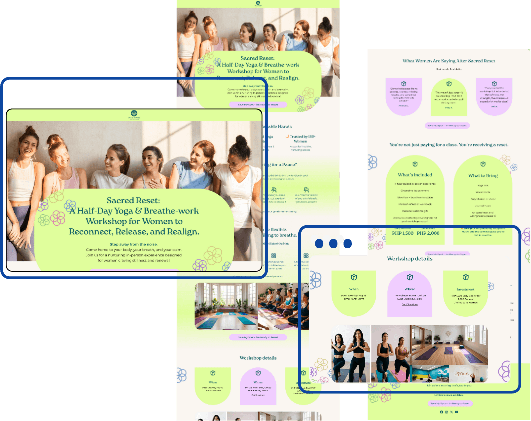 Instead of working harder to keep up with your sales, you’ll walk away with a done-for-you funnel ecosystem that’s fully aligned with your offer, built to automate, and designed to give you space to coach, launch, and grow with ease.