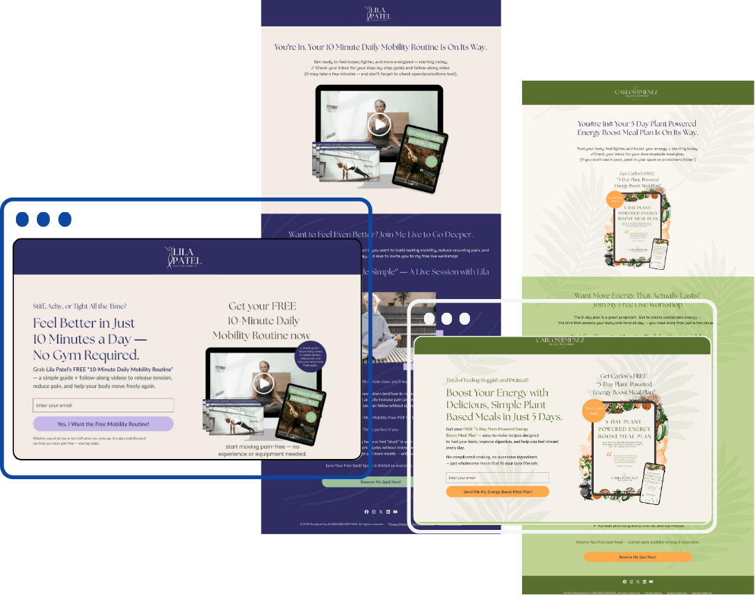 Lead Funnel Design + Build → a clarity-first opt-in page and thank you page, designed to capture leads and guide them with intention.